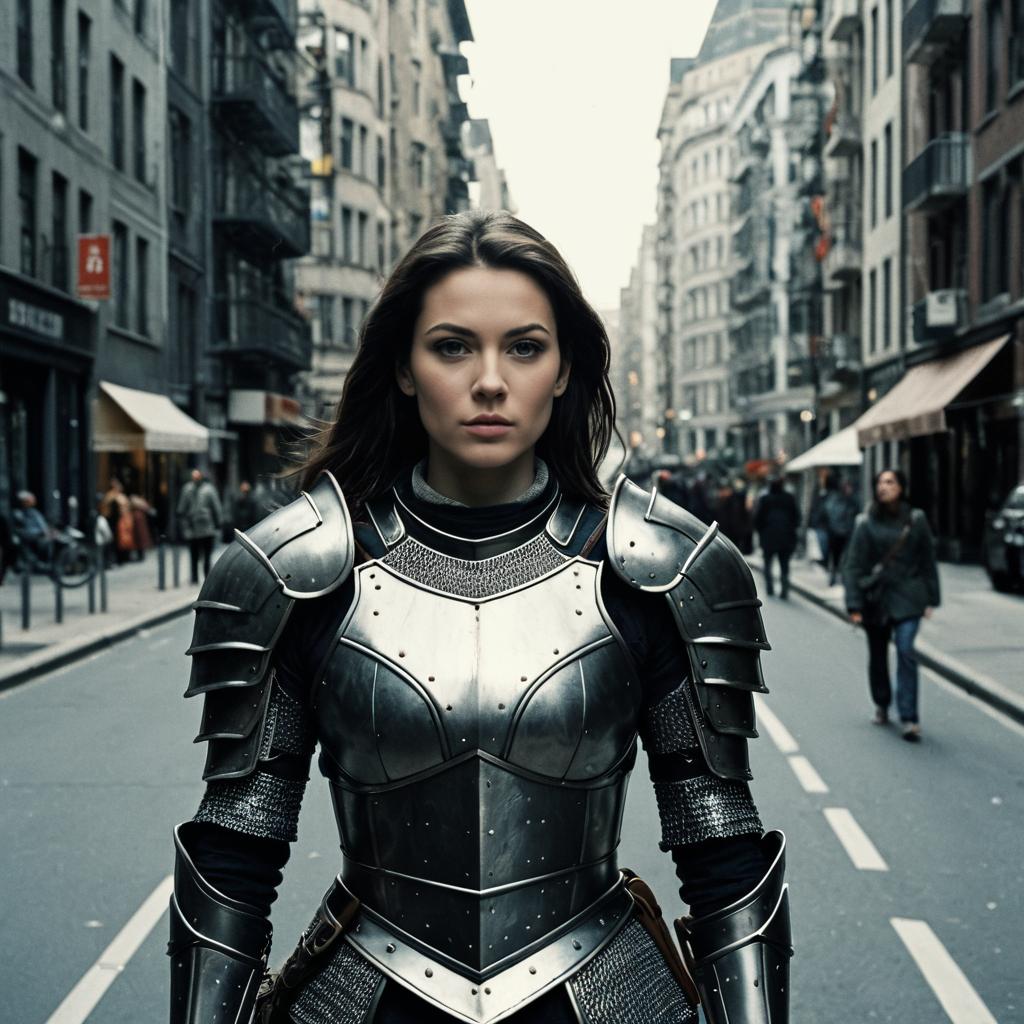 Red-Haired Warrior in City Street