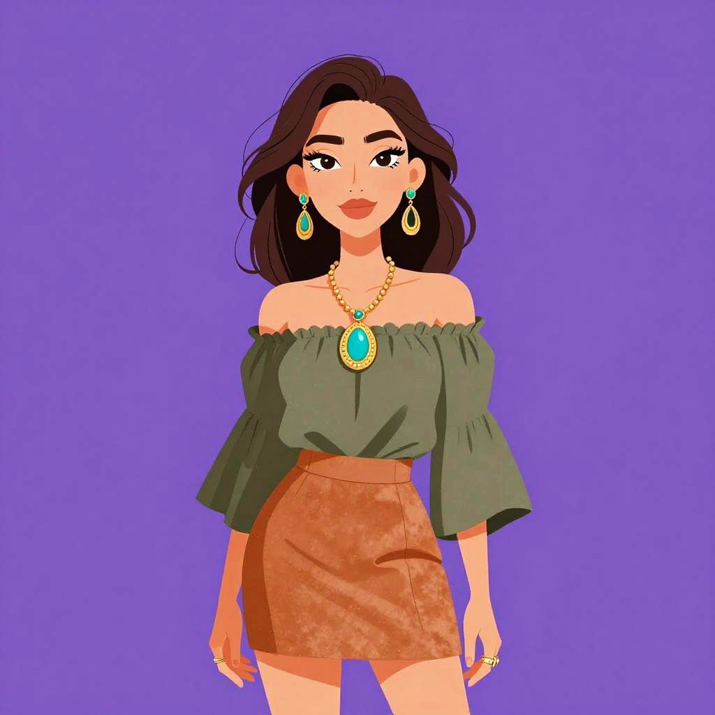 Bohemian Woman in Vibrant Orange Dress