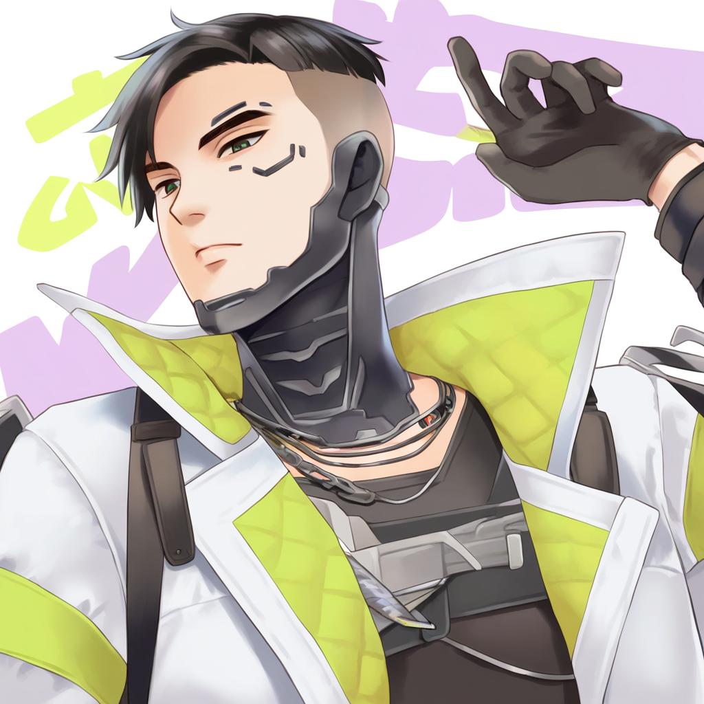 Crypto (apex legends), apex legends, 1boy, black eyes, black hair, parted hair, white jacket, black shirt, black gloves, necklace, undercut, by artist ichinomiya (blantte), leet