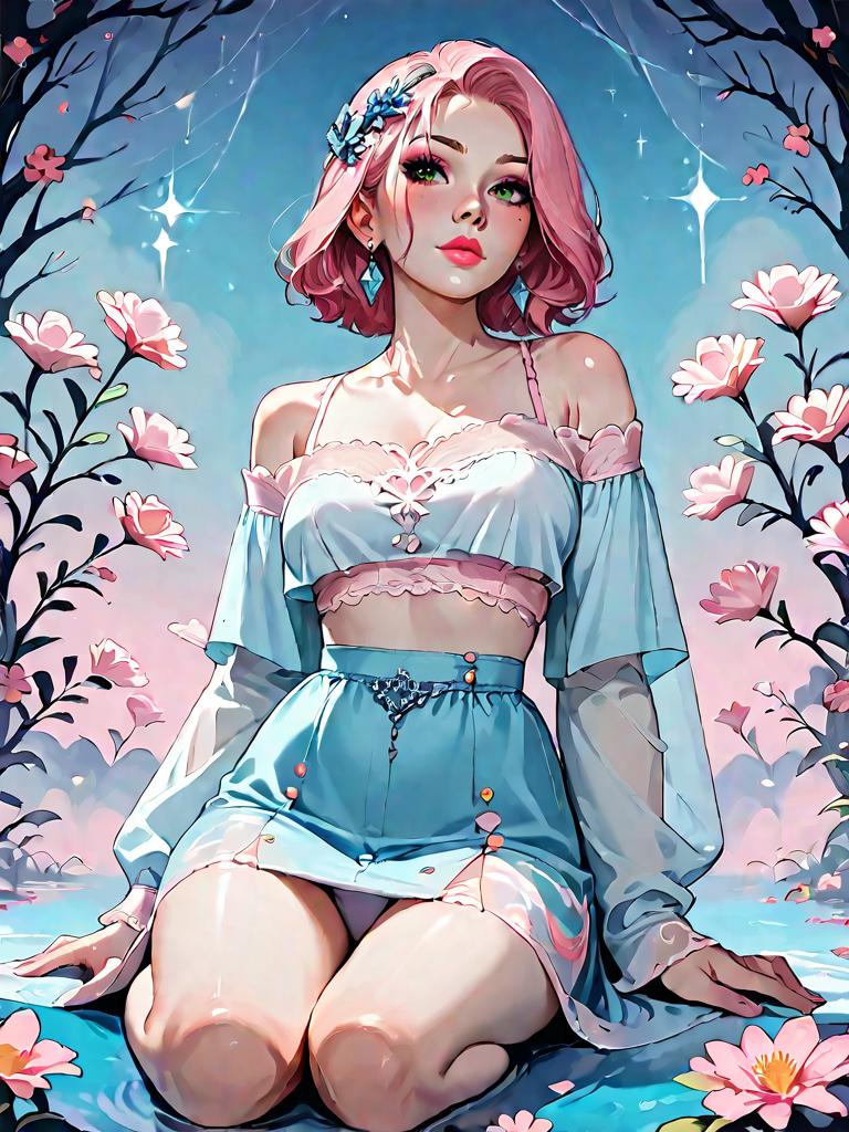 Full body, 1girl, dark_fantasy, nighttime, big boobs, fog, night mist, Chic emerald green velvet bodysuit, long sleeves, deep V-back, scalloped lace edges, body-hugging fit, paired with sheer nude stockings, floral lace motifs, soft and breathable fabric, elegant and alluring, ideal for boudoir photography.
