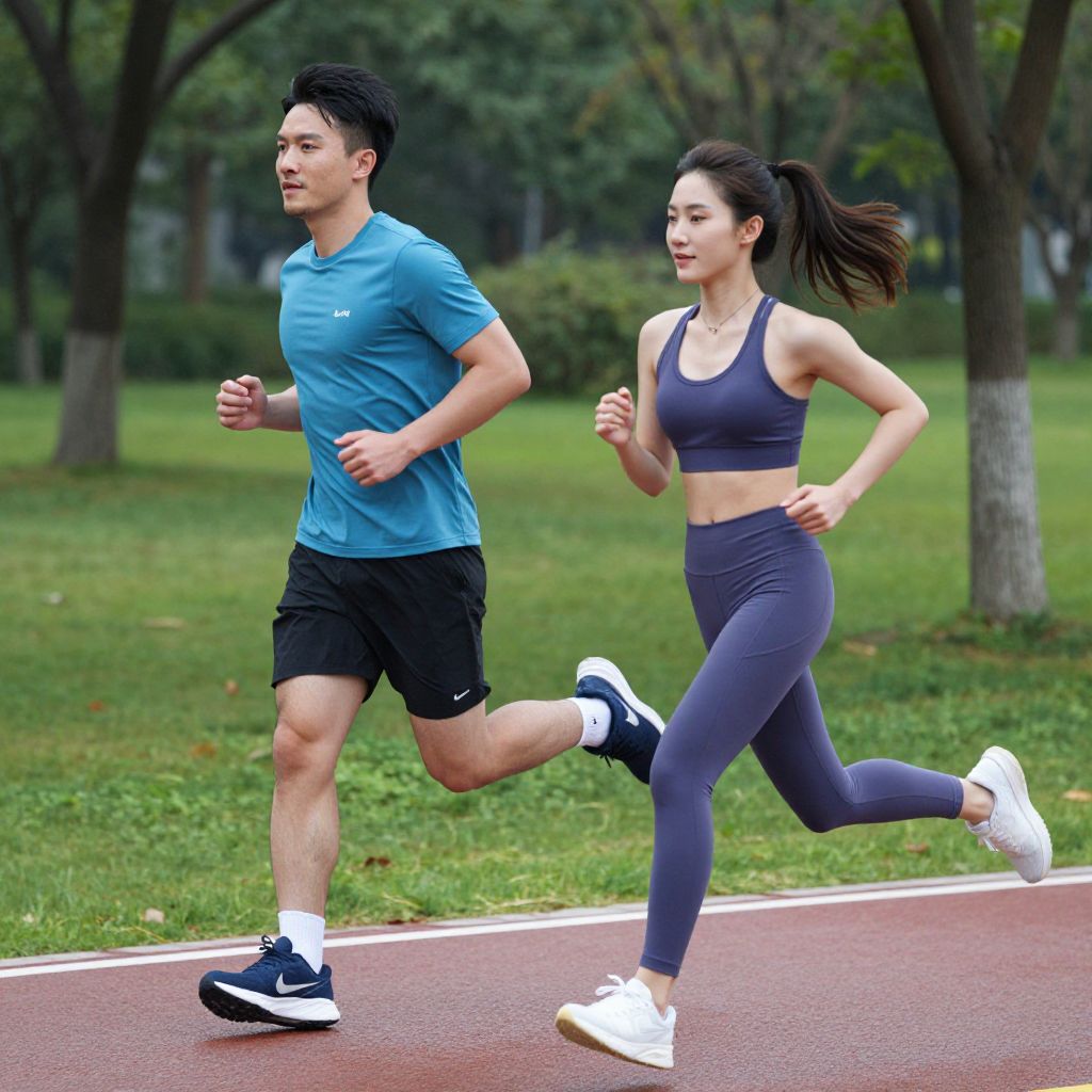 Young Couple, Man & Woman, Running & Exercising together to stay healthy & fit