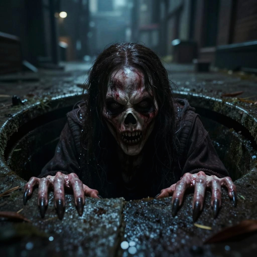 Terrifying Humanoid Behind Cracked Mirror