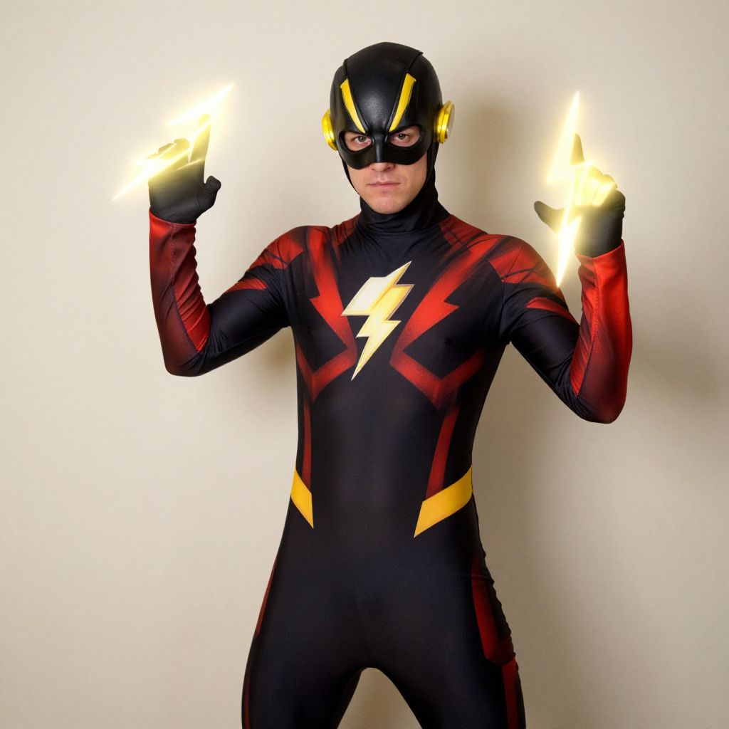 This dynamic image features a man resembling Reed Richards, also known as Mr. Fantastic from the Marvel Comics universe. Dressed in a vibrant blue superhero suit, he embodies the iconic character's ability to stretch and adapt, set against a futuristic backdrop that enhances the superhero theme.