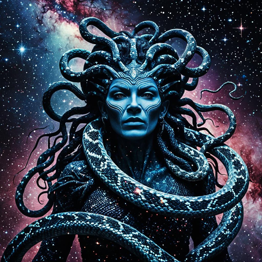 Starry Medusa with Serpent Hair in Nebula