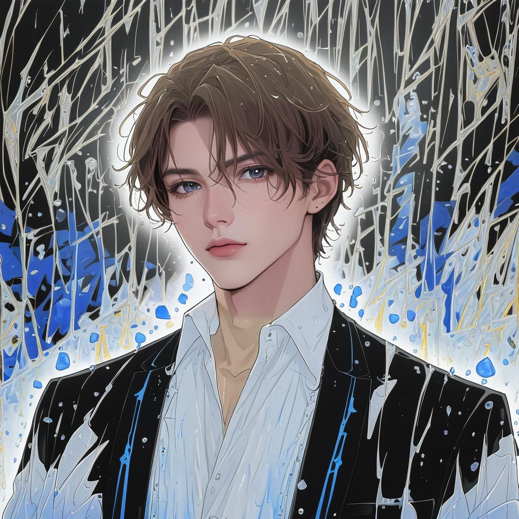 Artem wing (tears of themis), tears of themis, 1boy, blue eyes, brown hair, short hair, white shirt, collared shirt, black jacket, long sleeves, formal, by artist quick waipa, anime