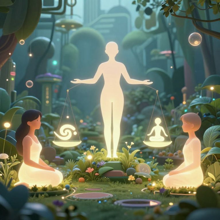 Body type prompts for AI: A serene digital landscape where different body types are represented as flowing, animated symbols in a cybernetic garden, glowing softly with ambient AI-generated wisdom and balance, highlighting inclusivity and representation.