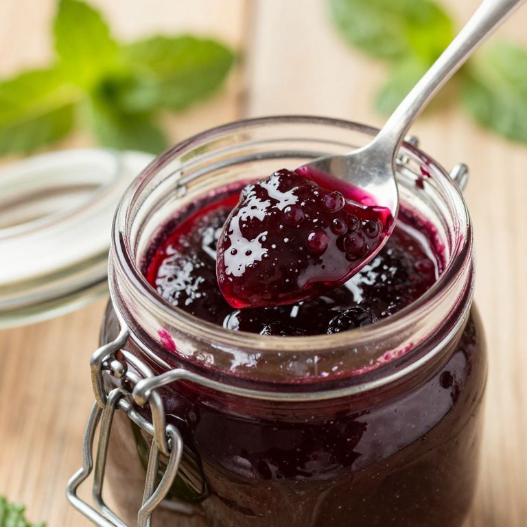 Spoon in Jar of Minted Berry Jam