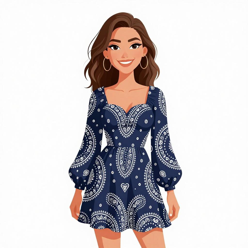 Smiling Woman in Boho Striped Dress