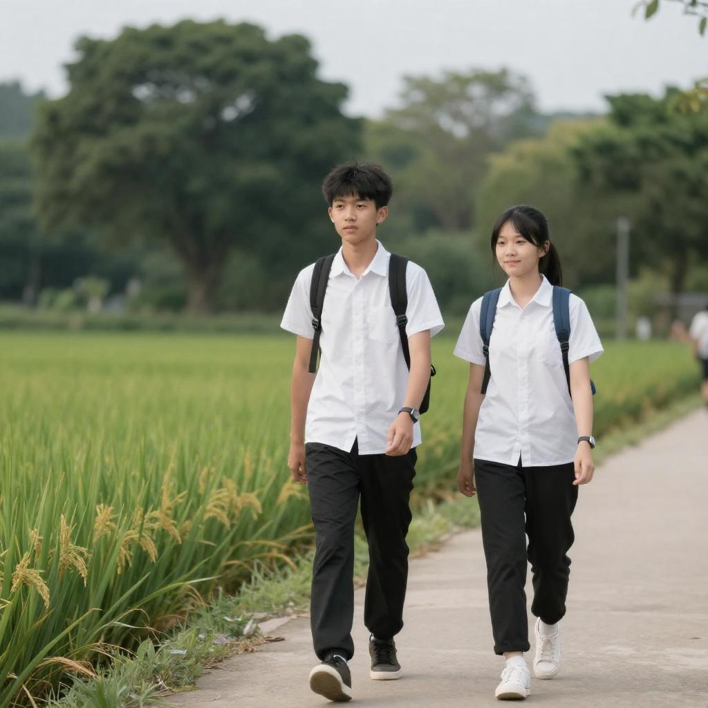 Photograph of a group of people playing a game of tag outdoors in front of a large house with a stone chimney. Central figure, a young man in a blue shirt, carries a girl in a red jacket and blue shorts. Other players, shirtless, in jeans and shirts, run around. Clear blue sky, grassy field, and house with metal roof in background. Casual, energetic scene.