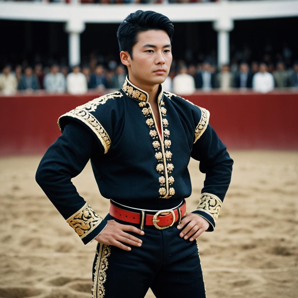 Asian Male Bullfighter in Traditional Outfit