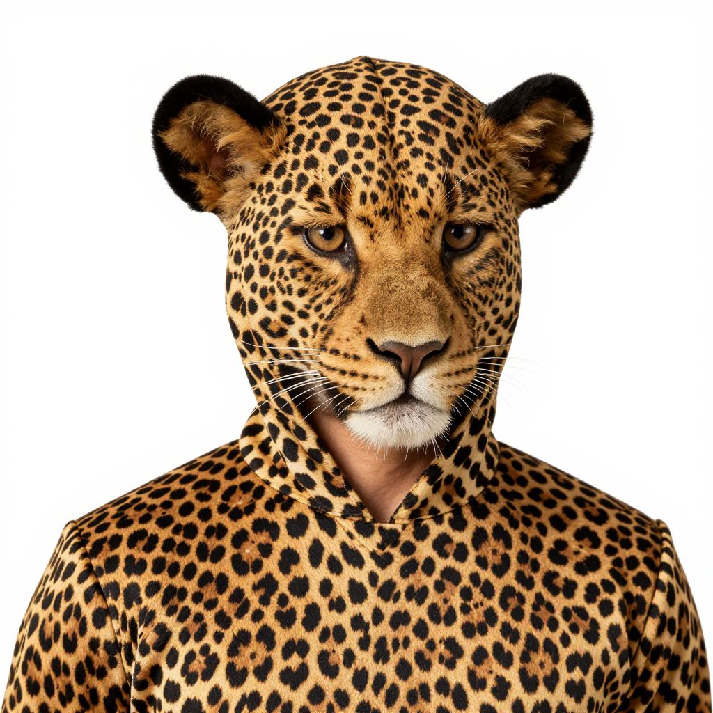 Man Simba Costume, a close up of a man wearing a leopard print outfit