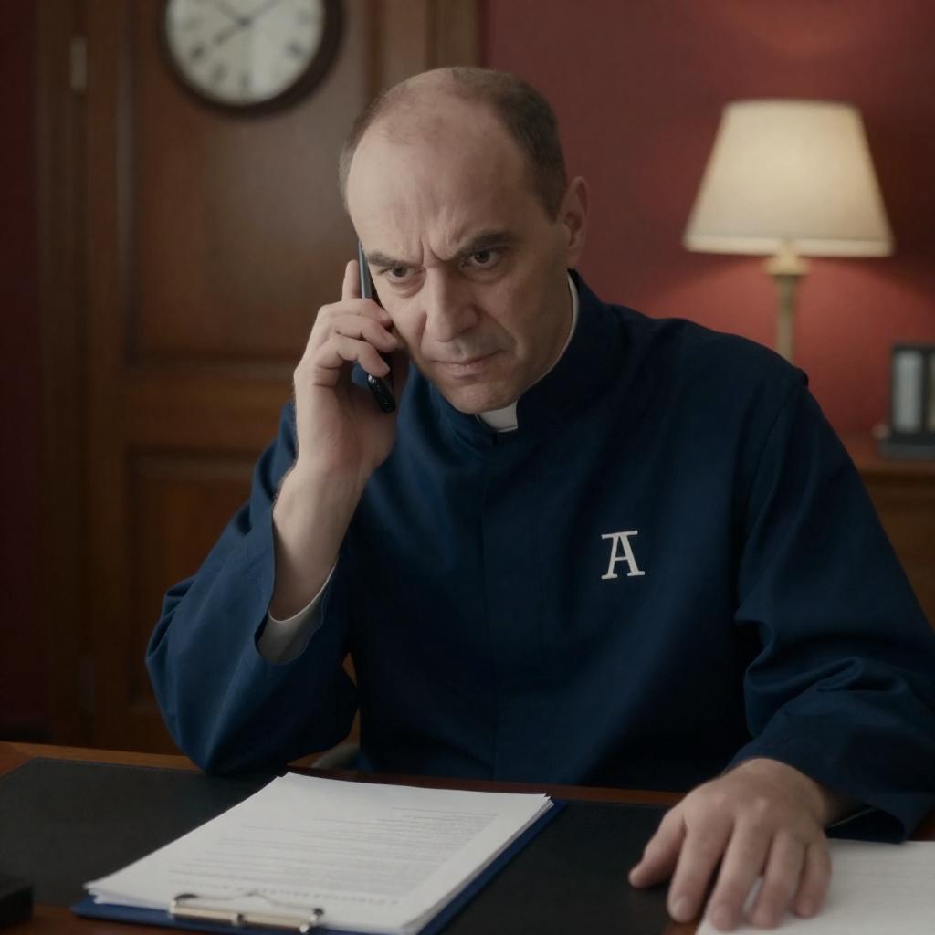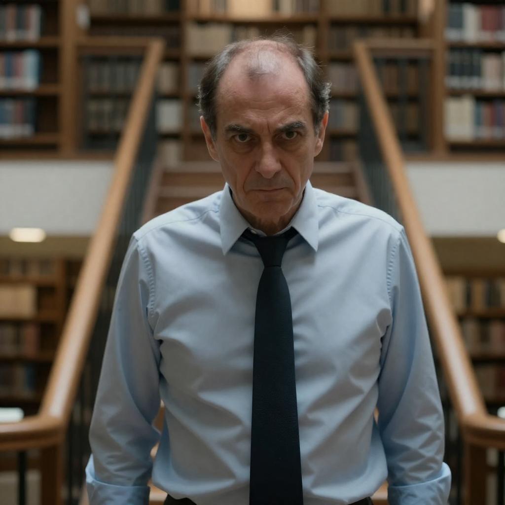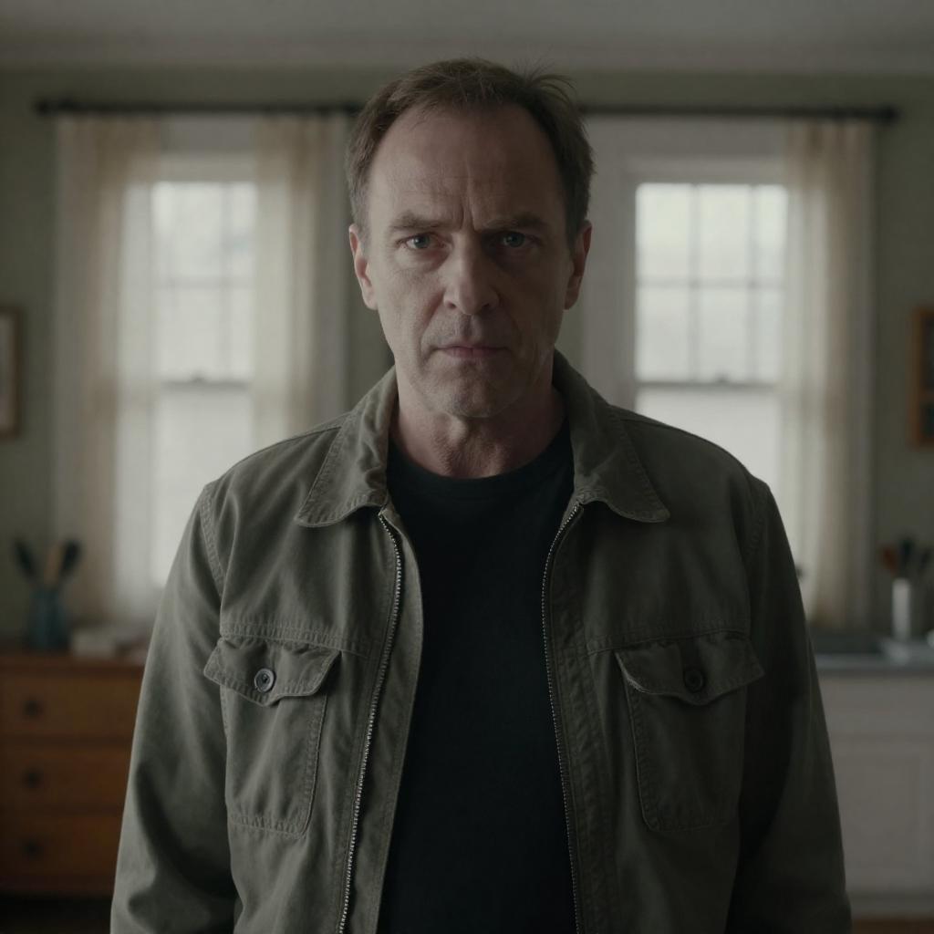 Middle-Aged Man in Dim Hotel Lobby