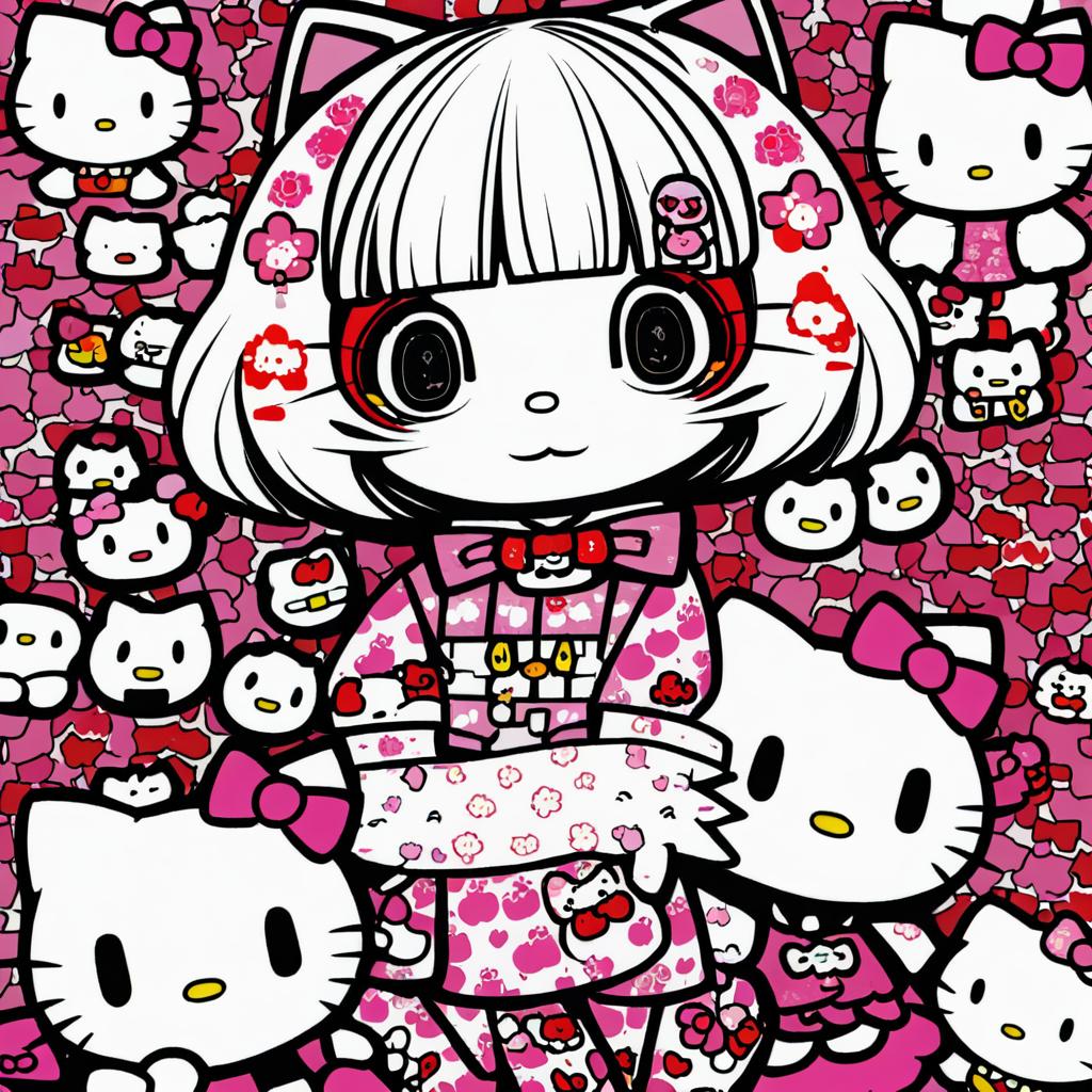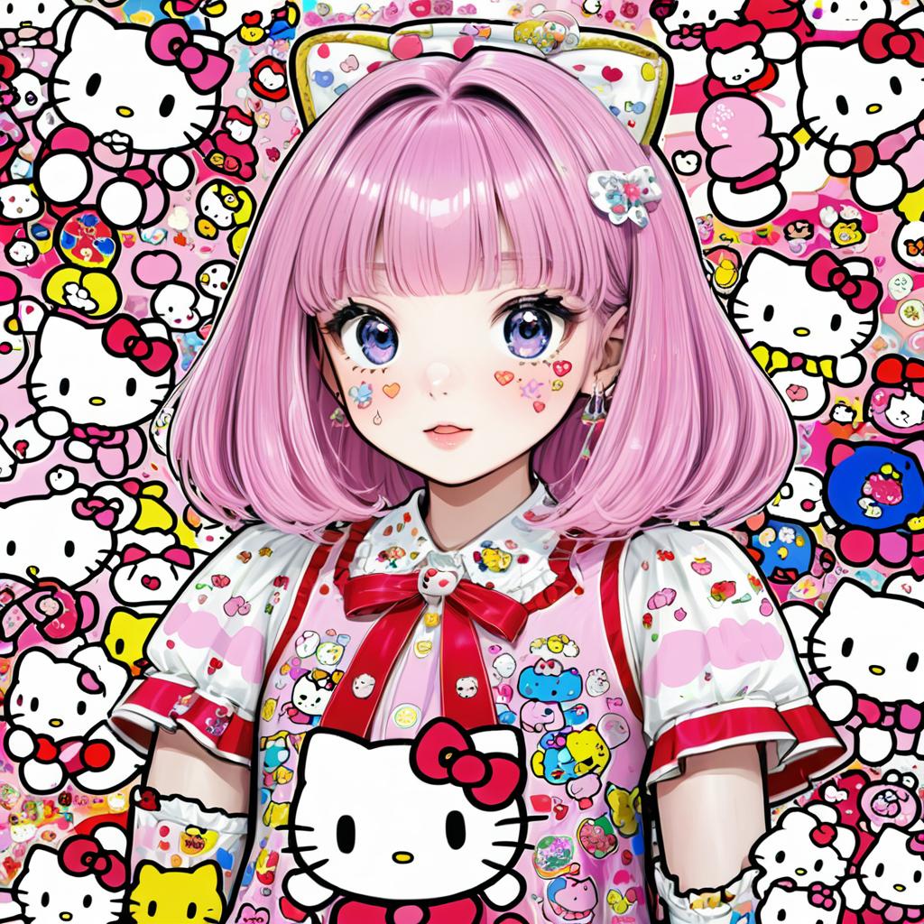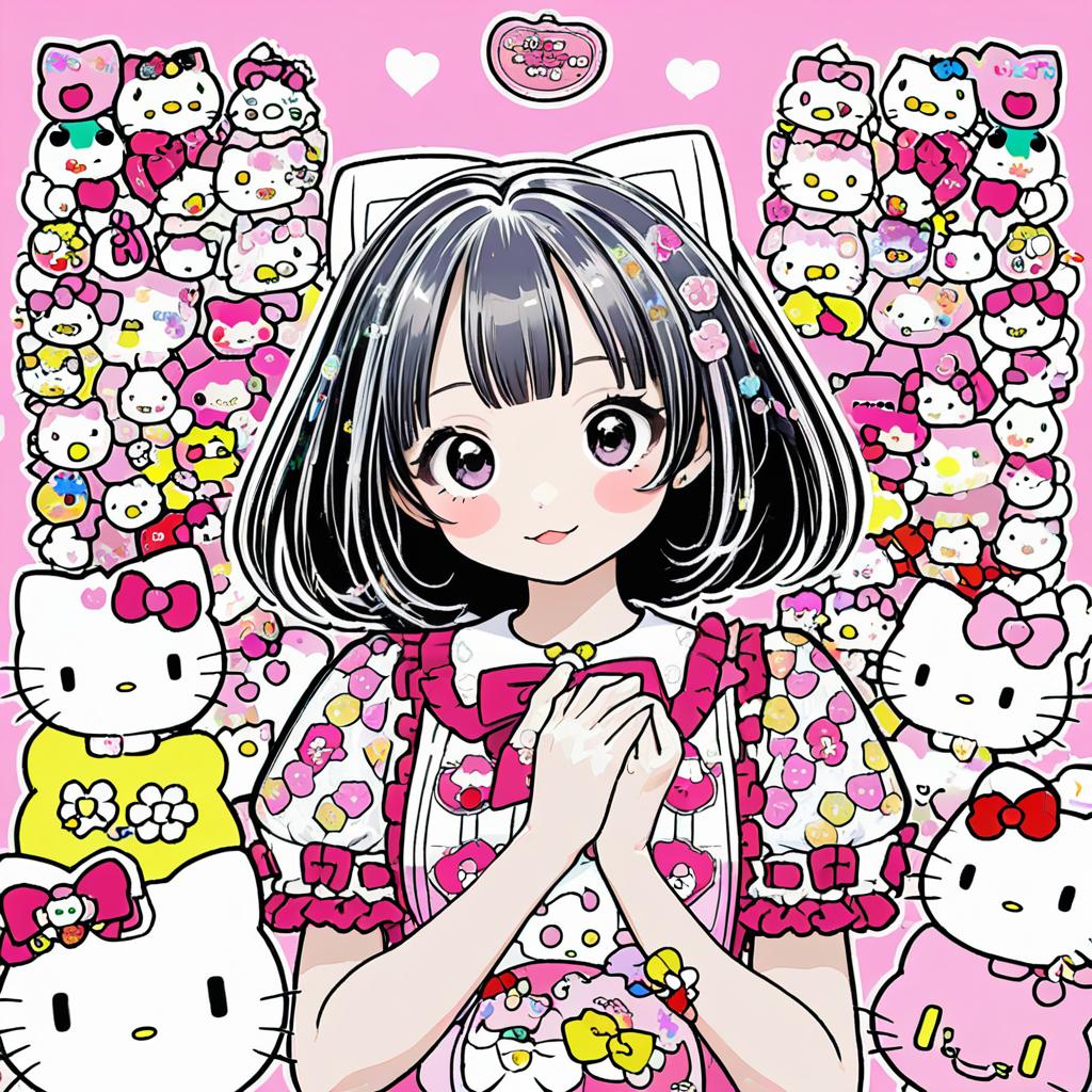 Hello kitty (character), sanrio, 1girl, long hair, short hair, by artist kawayabug, anime