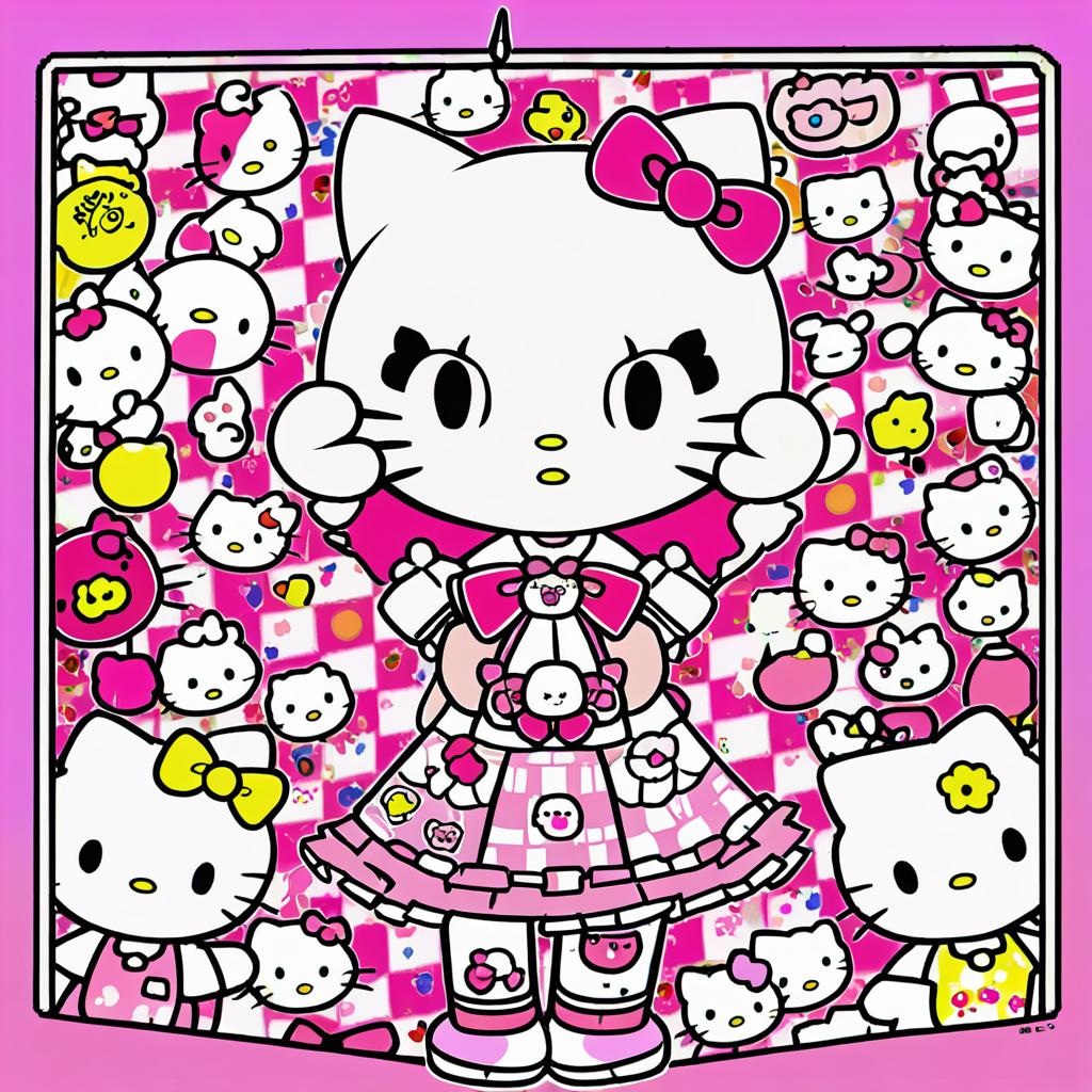 Illustration of Hello kitty (character), sanrio in the style of Kawayabug