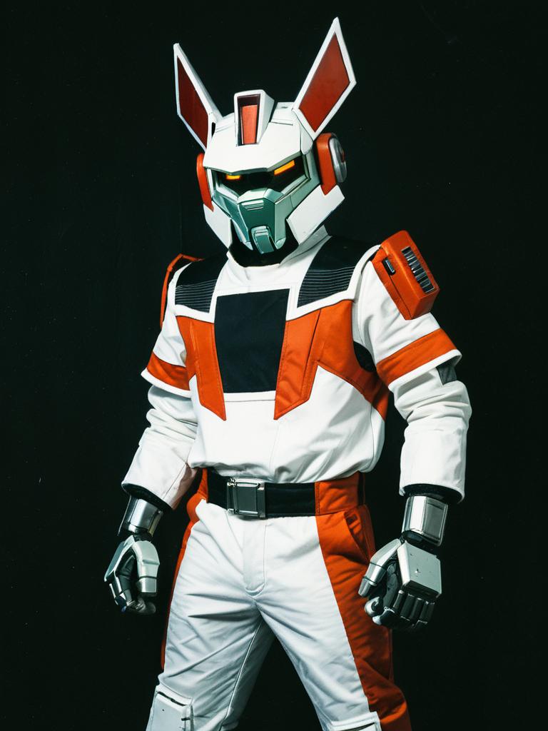 Man cosplay. Wearing Ratchet (G1) costume. Realistic photo. Dressed as Ratchet (G1) --sref 1399
