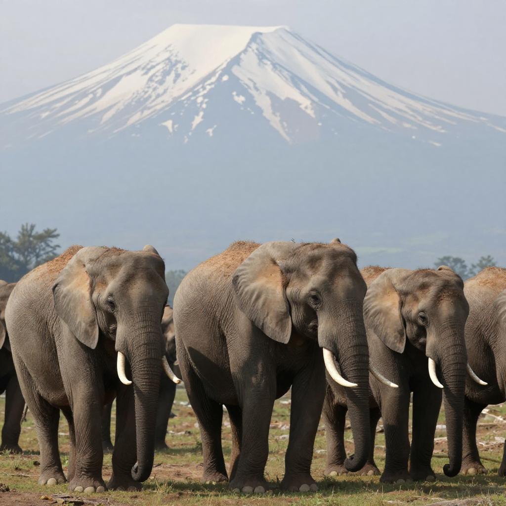Photograph of a herd of about 15 African elephants standing in a shallow river, taken at eye level. The elephants are gray with large, curved tusks, and they're all facing the camera. The background is a lush, green forest with trees and bushes. Lighting is natural, even, and soft. The depth of field keeps both the elephants and the background in focus, showcasing the detailed textures of the elephants' skin and the surrounding foliage.