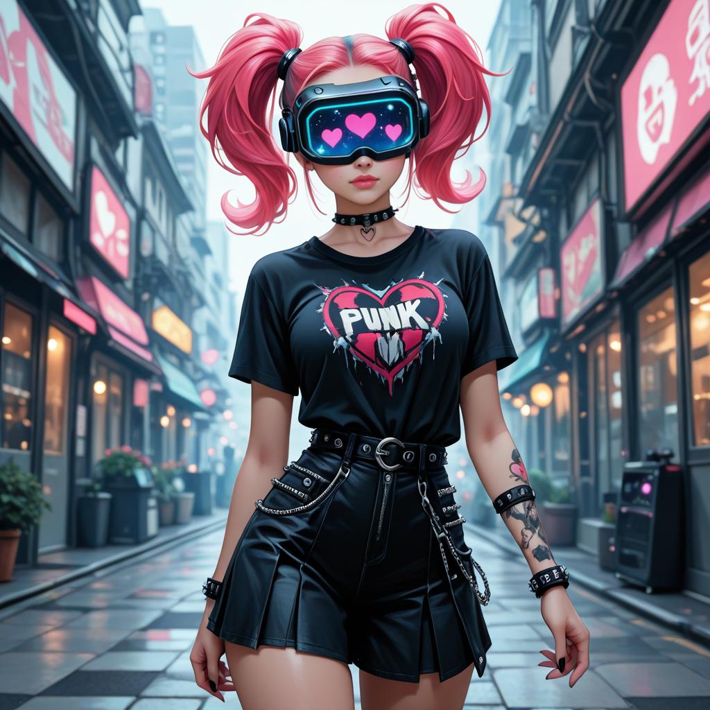 Heart-shaped head-mounted display, cowboy shot, punk, masterpiece, 1girl, cute
