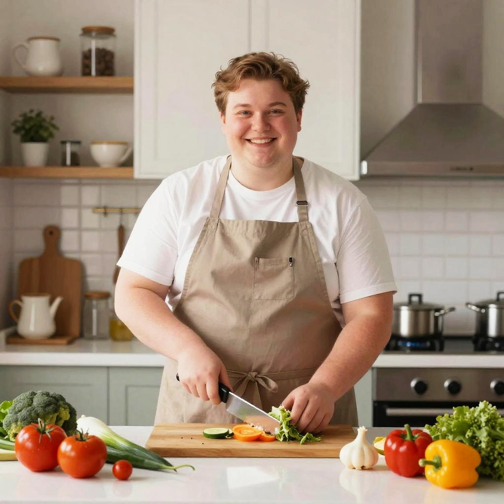 Obese YouTuber sitting in a cozy gaming room, colorful LED lights, multiple monitors displaying gameplay, casual outfit, joyful expression, digital art style