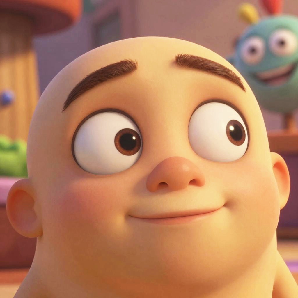 Cross eyed character with exaggerated facial features, playful and cartoonish style, vibrant colors, whimsical background, joyful atmosphere, detailed eyes looking in different directions, lively and humorous expression, suitable for animation art