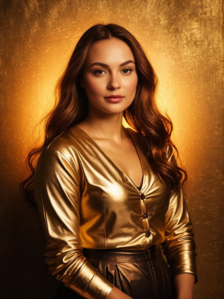 Woman in Metallic Satin Dress with Dramatic Lighting