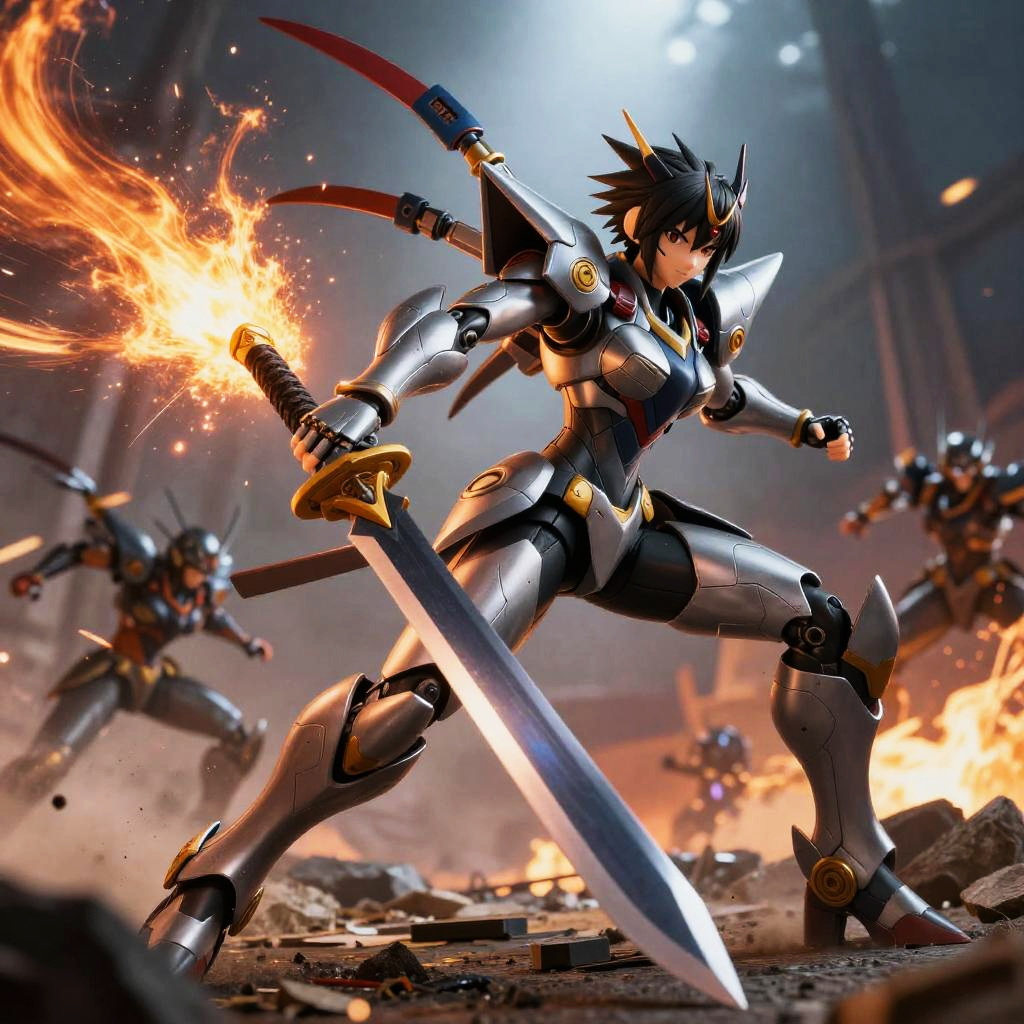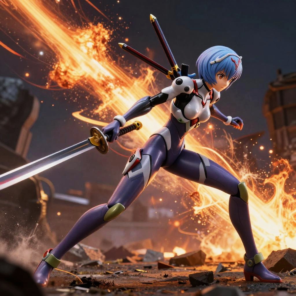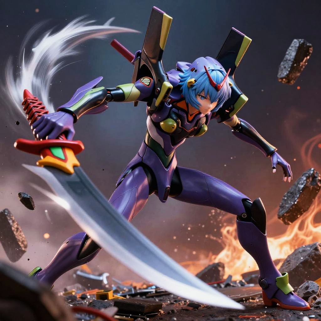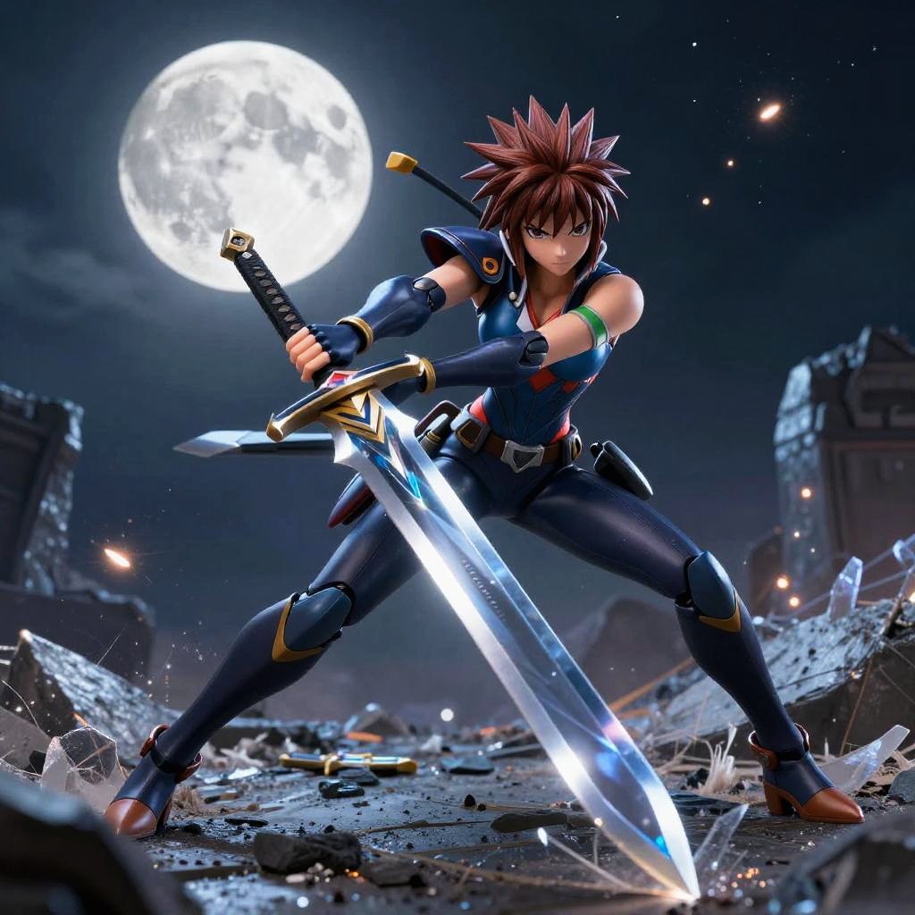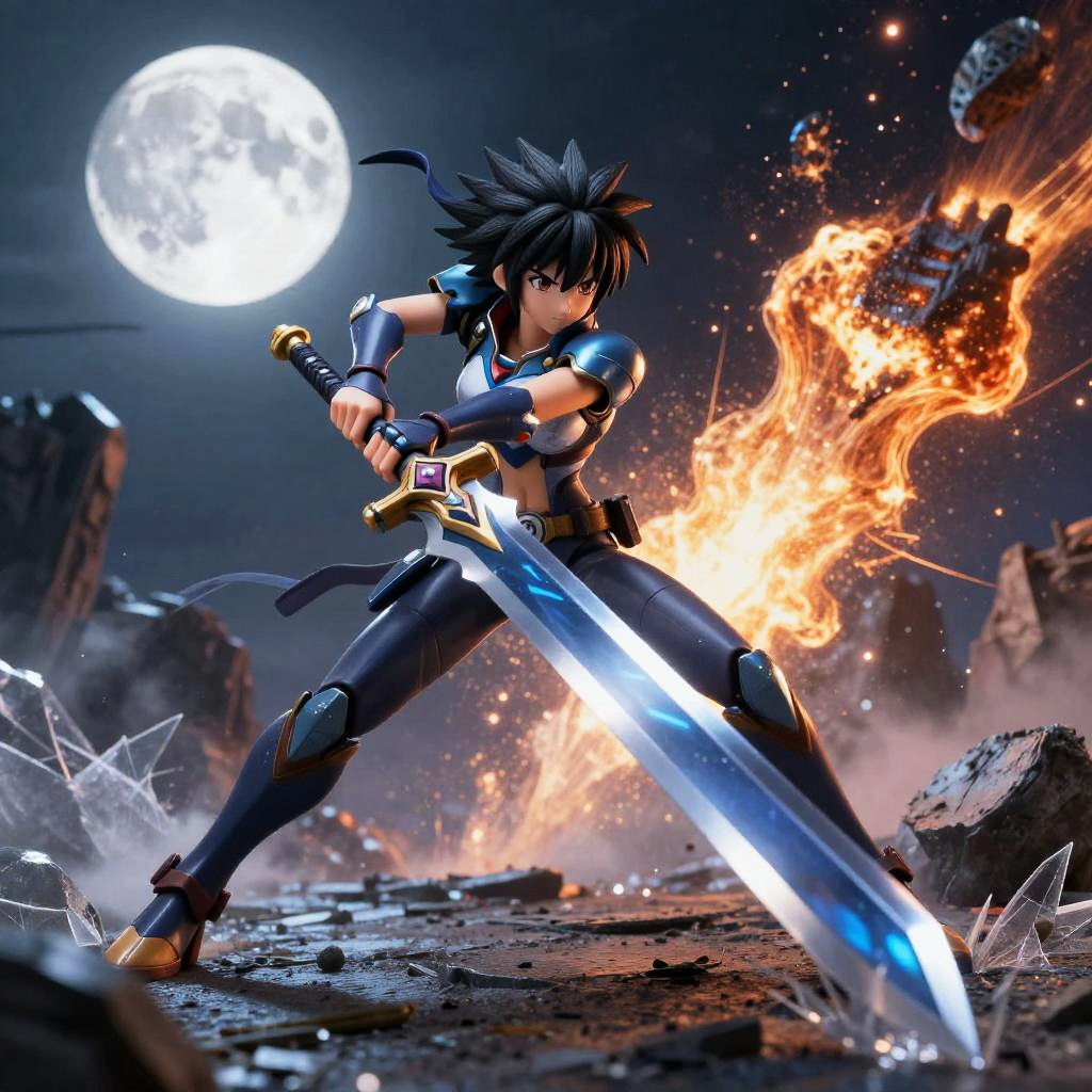 (blind box toy style:1.5)(dramatic, gritty, intense:1.4), masterpiece, best quality, 32k uhd, insane details, intricate details, hyperdetailed, hyper quality, high detail, ultra detailed, Masterpiece, super vista, Epic CG masterpiece, Kaworu Nagisa, hdr, dtm, full ha, blade clash in moonlight, crystal sword, in the style of mecha anime, like a god The dancing long knife charging forward battlefield, the burst meteor, the fierce battle of fighting with his life, 8K, ultra detailed graphic tension, dynamic poses, stunning colors, 3D rendering, surrealism, cinematic lighting effects, realism, 00 renderer, super realistic, full - body photos, super wide Angle, HD, 1girl, (full body:1.7), icy wasteland