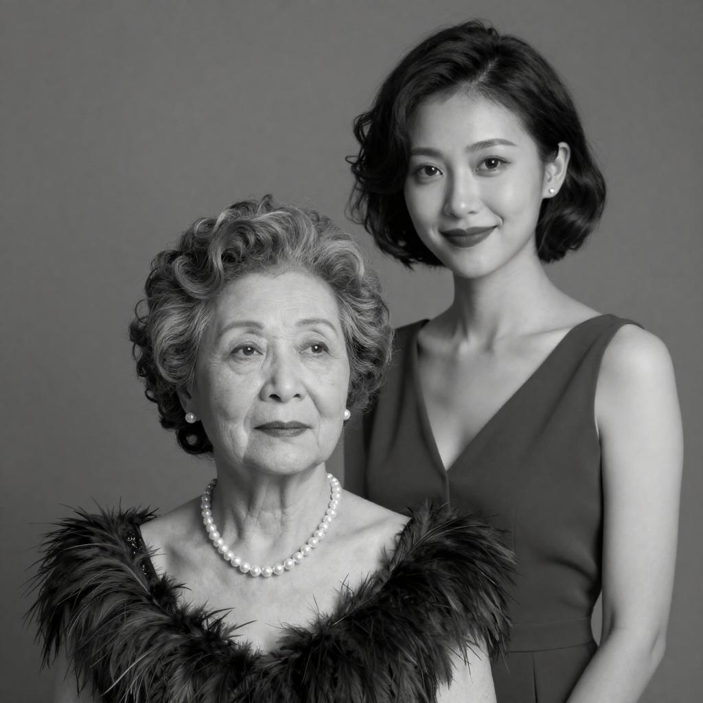 Black-and-White Portrait of Two Women