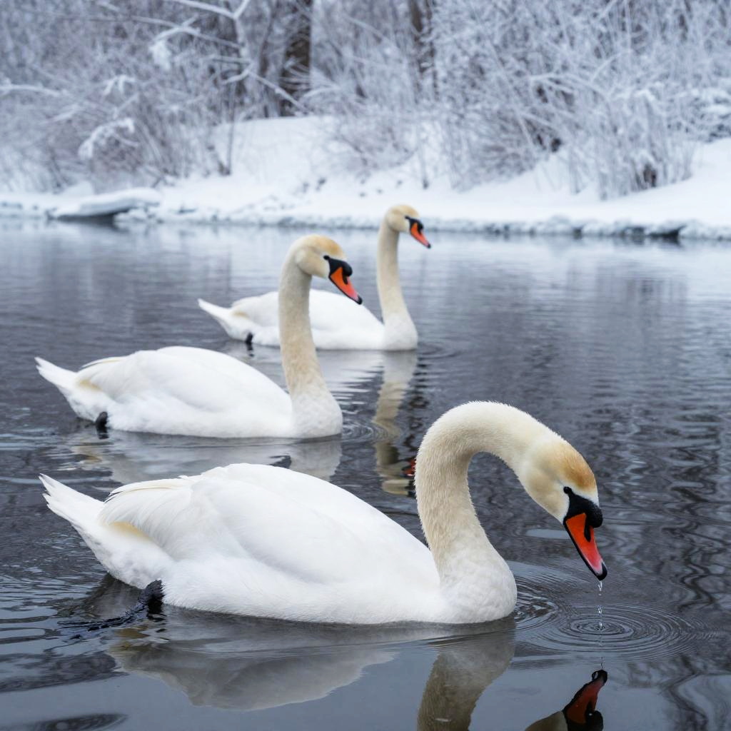 Three Swans on Frosty Lake