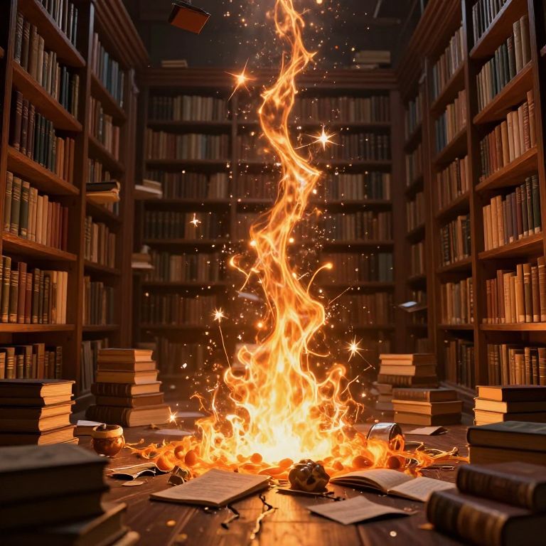In the heart of an infinite library, knowledge erupts like molten stars, scattering ancient wisdom across the floor, where the weight of forgotten truths crackles beneath the touch of curiosity.