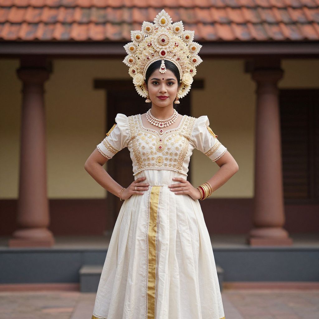 Onam Special Costume, woman in a traditional dress with a large headdress
