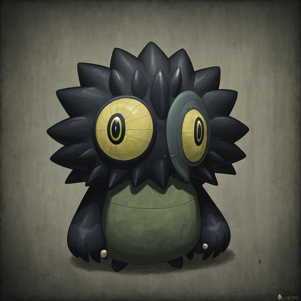 Applin, pokemon, no humans, hair between eyes, yellow eyes, black hair, long sleeves, pokemon (creature), by artist cuteg, anime