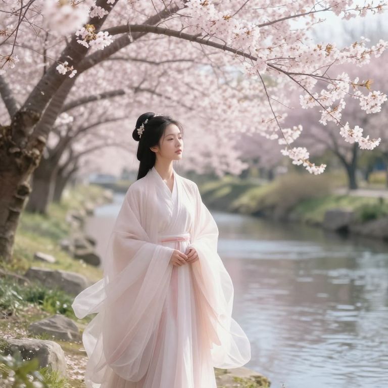 A young maiden with alabaster skin and corvus tresses adorned with ivory lilies, reclines languorously in a weathered wooden rowboat, Capture the diaphanous quality of her gossamer white gown as sunlight, filtering through the verdant canopy of lotus leaves, illuminates her with a halcyon glow, Her pose should exude an air of ethereal grace, limbs arranged in a manner suggesting both relaxation and classical elegance, Utilize a high angle shot, mimicking the perspective of a divinity gazing upon their creation, Emphasize the juxtaposition between the maiden's delicate beauty and the rustic charm of the boat, all set against a backdrop of shimmering cerulean water and vibrant lily pads, The image should evoke a sense of tranquil serenity and timeless beauty, reminiscent of classical paintings depicting nymphs and goddesses, Add butterflies with iridescent wings fluttering around her, attracted by the lotus blossoms she holds, to further enhance the scene's ethereal aura, Symbolist chiaroscuro, tenebrist, volumetric lighting, subtle halation, high-contrast, film grain, teal and orange color grading, high dynamic range, S-curve gamma