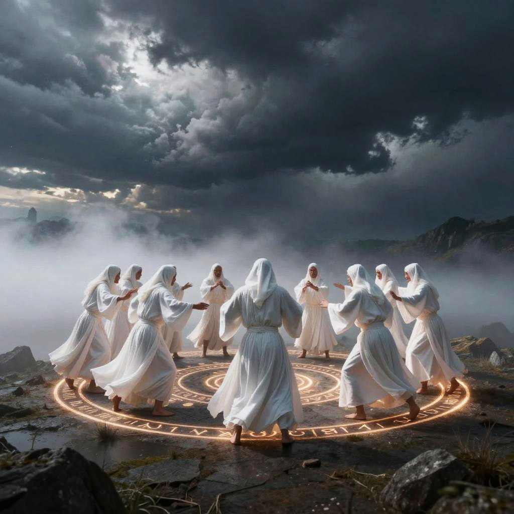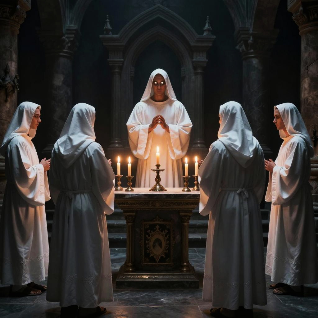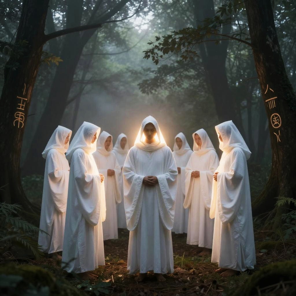 Mystical White Robe Cult in Forest