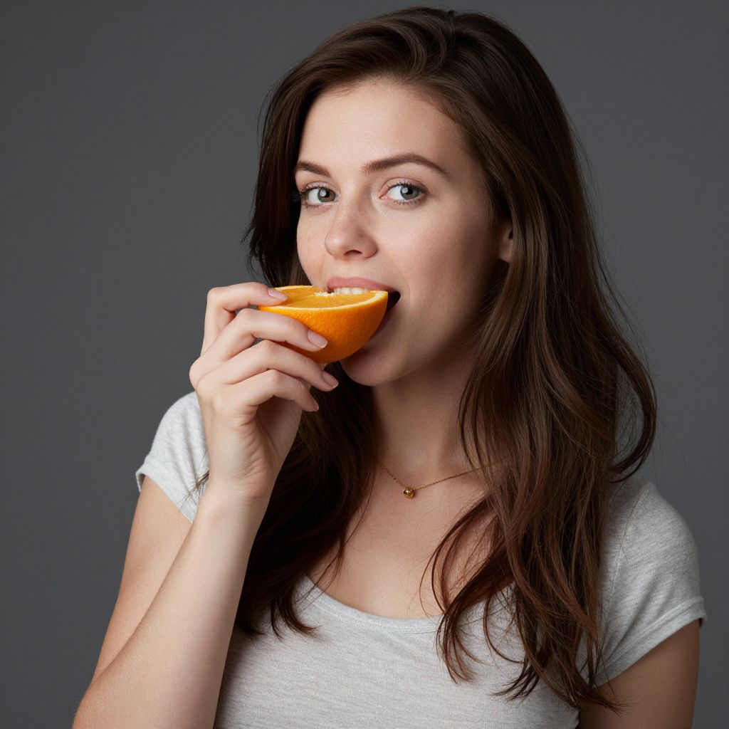 Attractive Woman Eating Orange