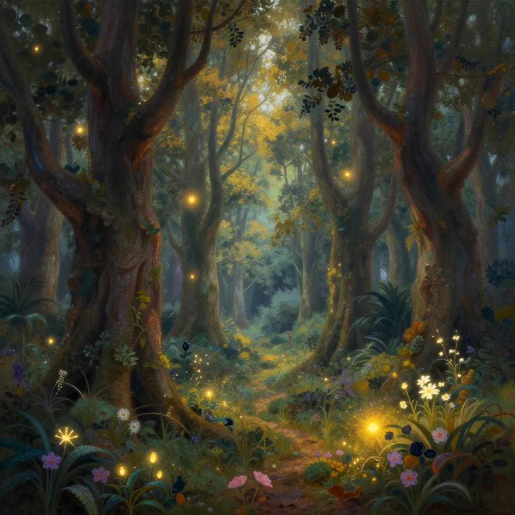 Enchanted Forest with Glowing Flora