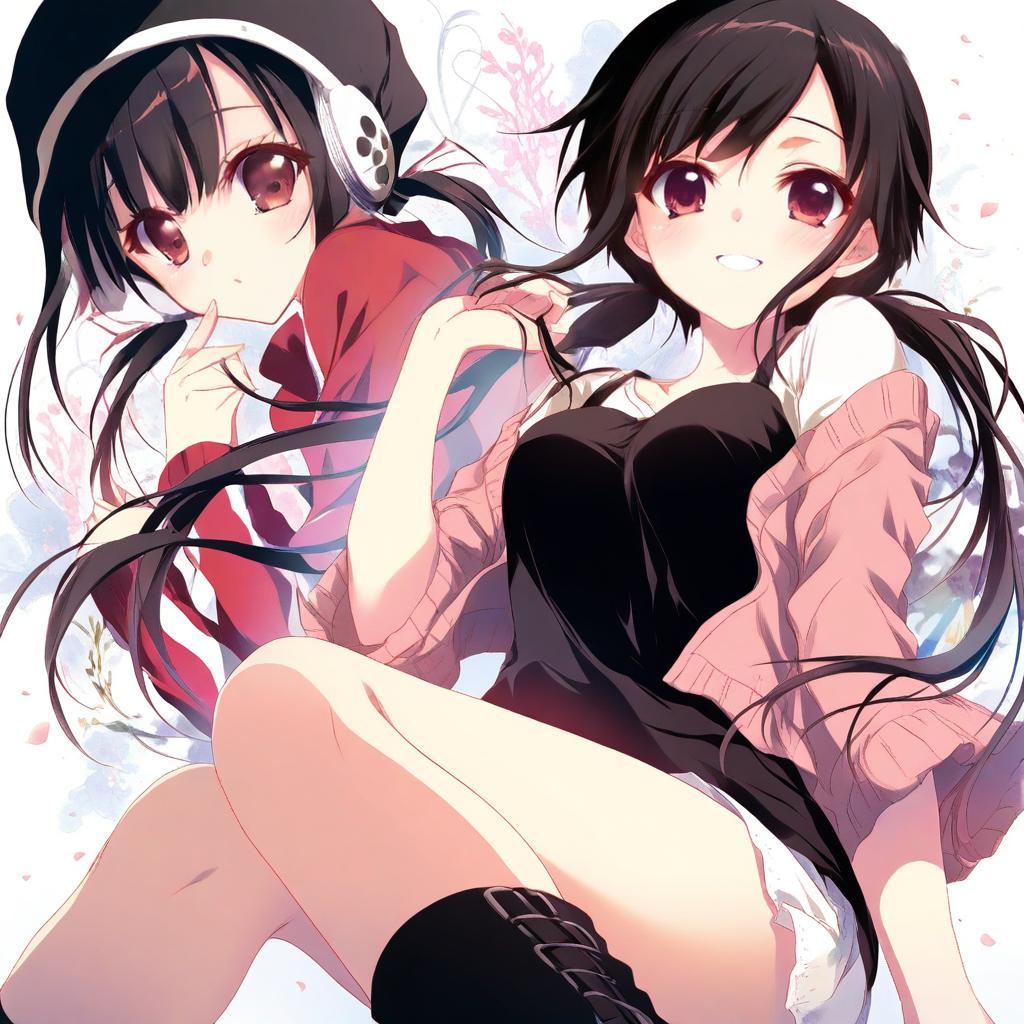 Asahina hiyori, kagerou project, 1girl, black eyes, black hair, long hair, low twintails, twintails, by artist izumi tsubasu, animagine