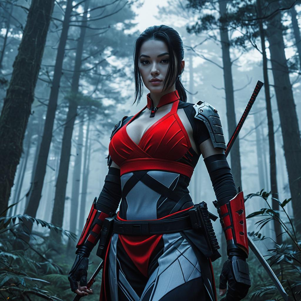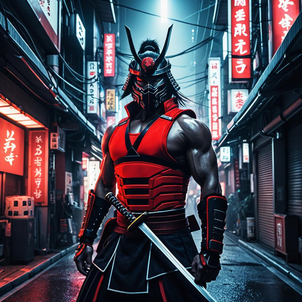 Cybernetic Samurai Woman in Futuristic Tokyo