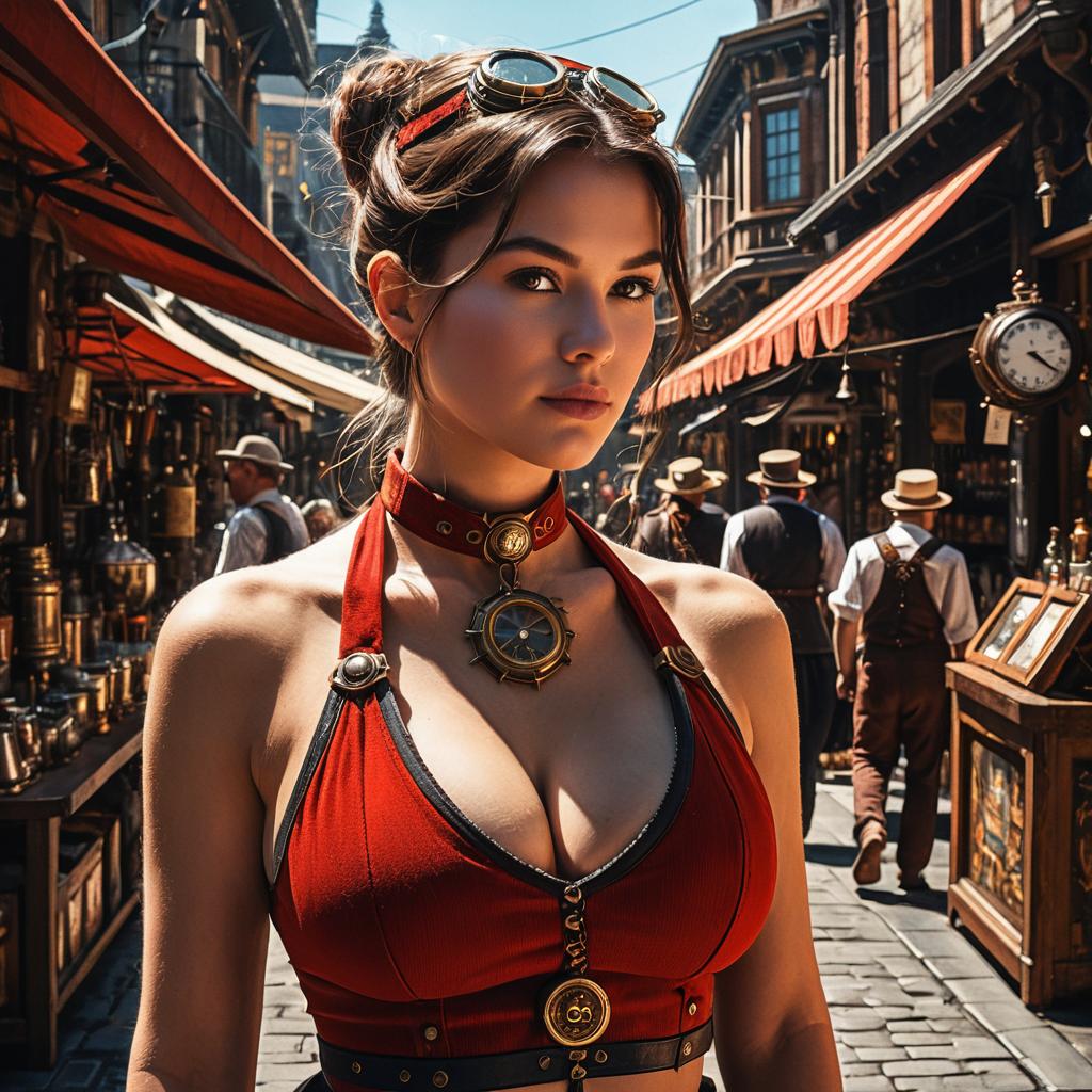 Samurai woman with glowing blue armor and cybernetic enhancements on rainy rooftop overlooking futuristic Tokyo street illuminated by holographic billboards, wearing a form-fitting red halter top, highly detailed digital painting, artstation quality, smooth, hard focus, cinematic lighting, illustration inspired by Katsuhiro Otomo.