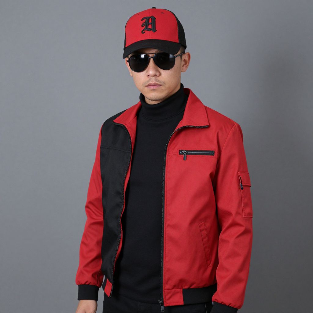 "Uniqso Makima Costume, man in a red and black jacket and hat"