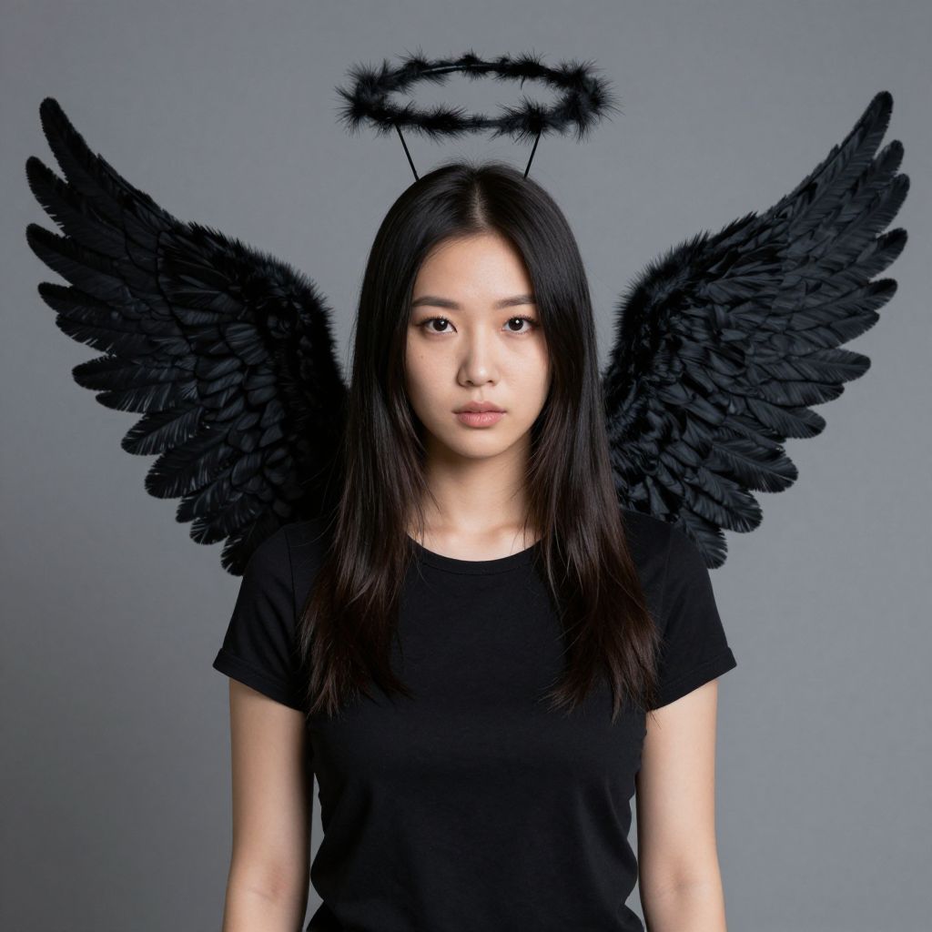 Woman with Small Black Angel Wings