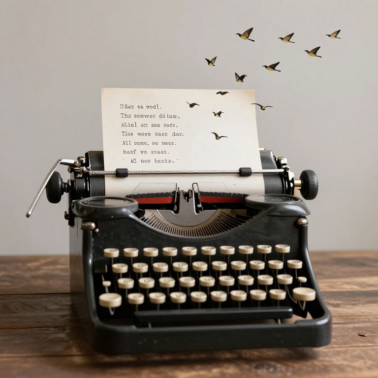 An ancient typewriter, powered by invisible poets, composes sonnets in midair that only certain birds can hear and follow.