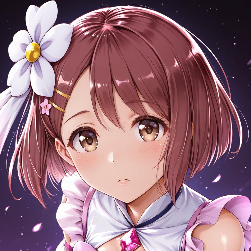 Hanadera nodoka, healin' good precure, 1girl, pink eyes, short hair, pink hair, brown hair, hair flower, hairclip, magical girl, magical girl, by artist ganari ryuu, dark_illustrious