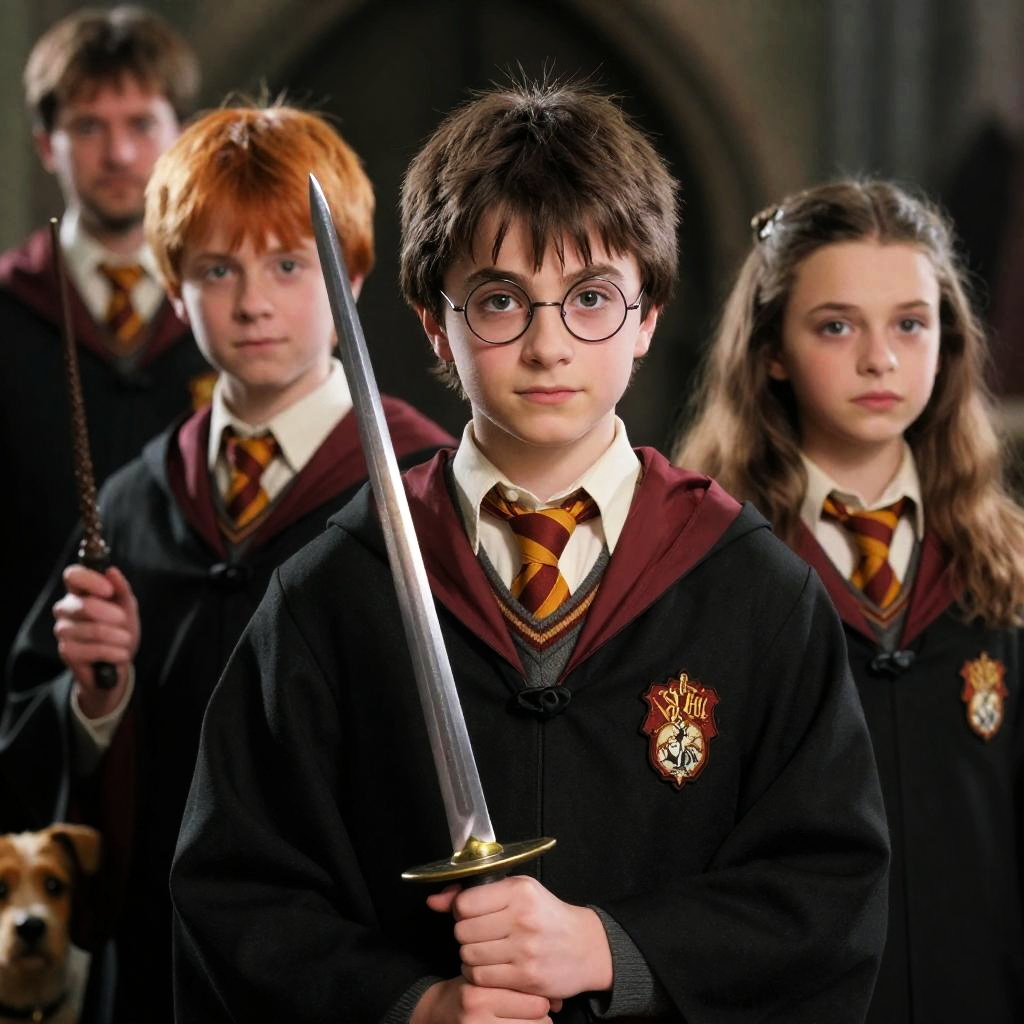 Leogirl, realistic photography, Illuminated only by the soft, warm light emanating from the tip of his wand, Harry's face is partially obscured by shadows, reflecting his constant battle with darkness. His glasses catch the light, creating a twinkling effect that hints at his magical world.close up, perfecteyes
