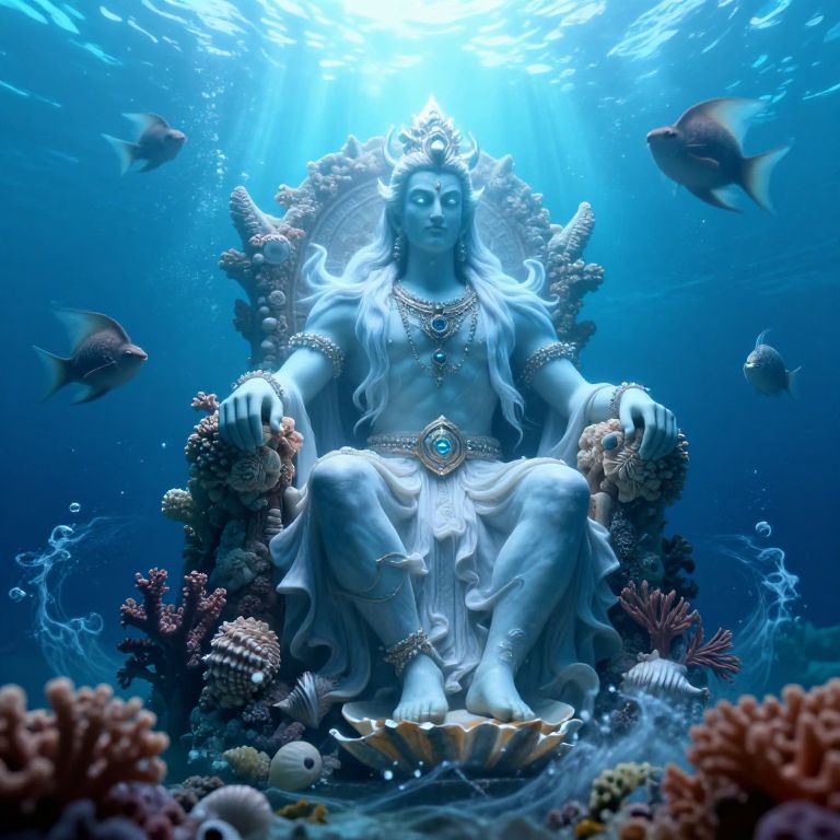 Majestic Underwater God on Throne