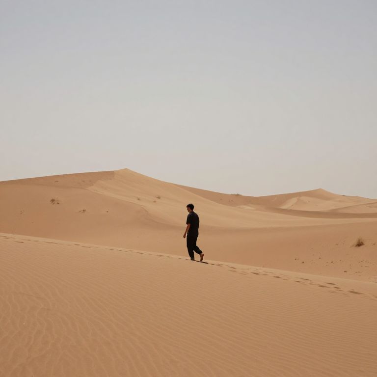 In the hushed embrace of the desert, a solitary figure traverses shifting sands, where whispers of the soul sculpt landscapes of introspection, evoking a profound sense of solitude and the eternal dance between freedom and isolation.