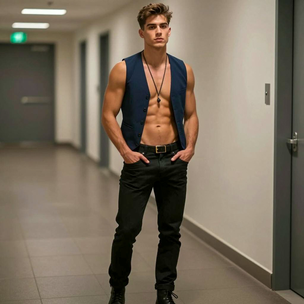 Muscular Man in Dimly Lit Setting