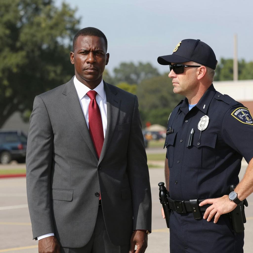 Photograph of a middle-aged man with short, dark hair and sunglasses. He wears a beige sheriff's uniform with a badge and "Sheriff" patch on his right sleeve. He stands in front of blue metal bars, facing slightly to the left. Clear blue sky background. Sunlight highlights his face and uniform.