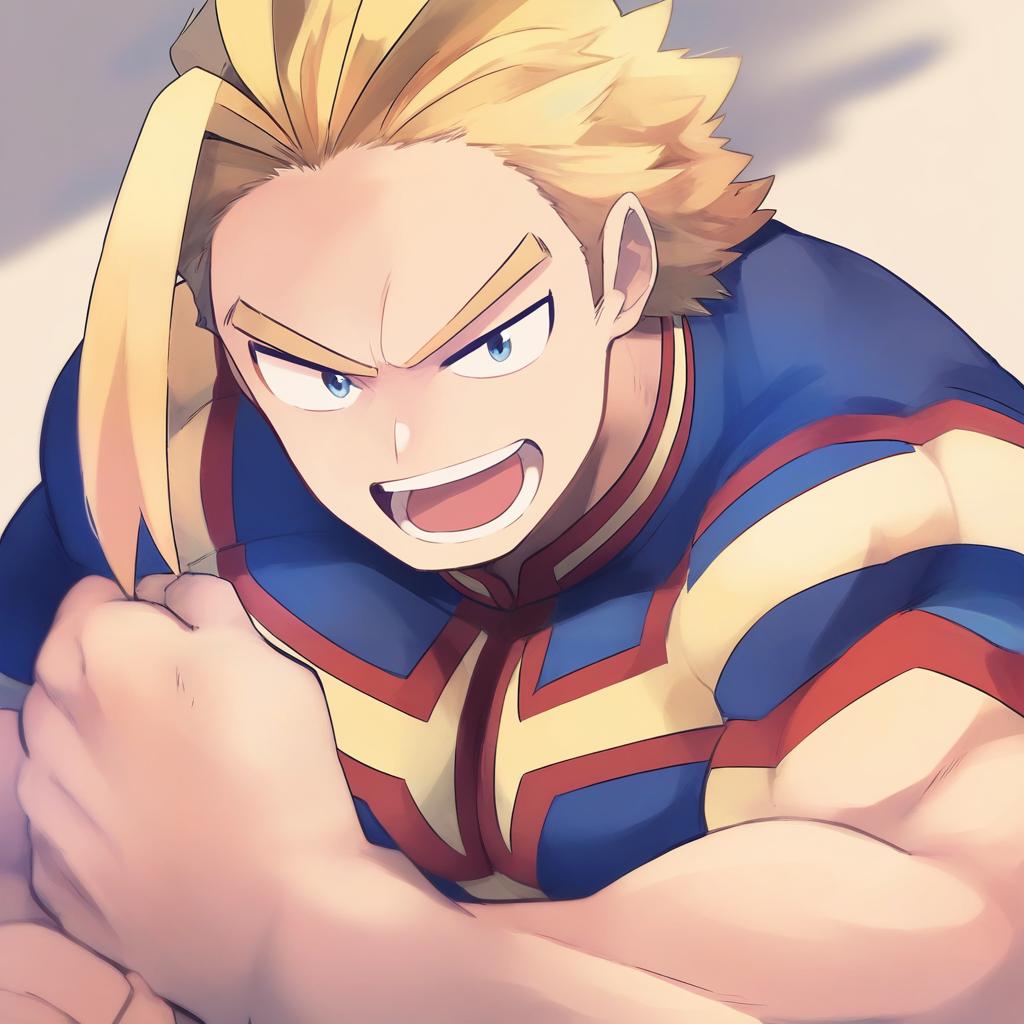 Illustration of All might, boku no hero academia in the style of Yuzuki gao