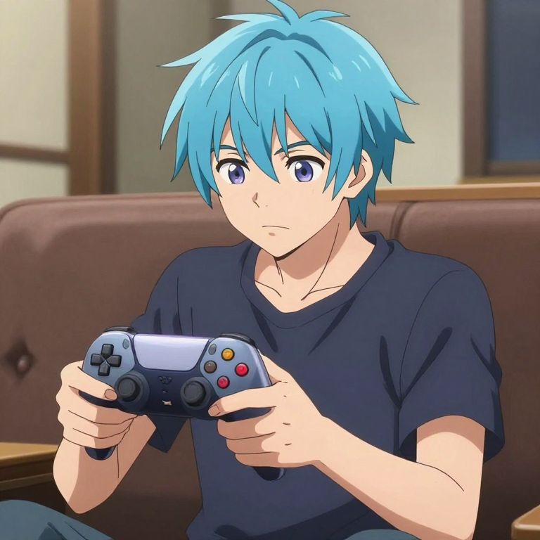 Anime Male Gamer with Blue Hair