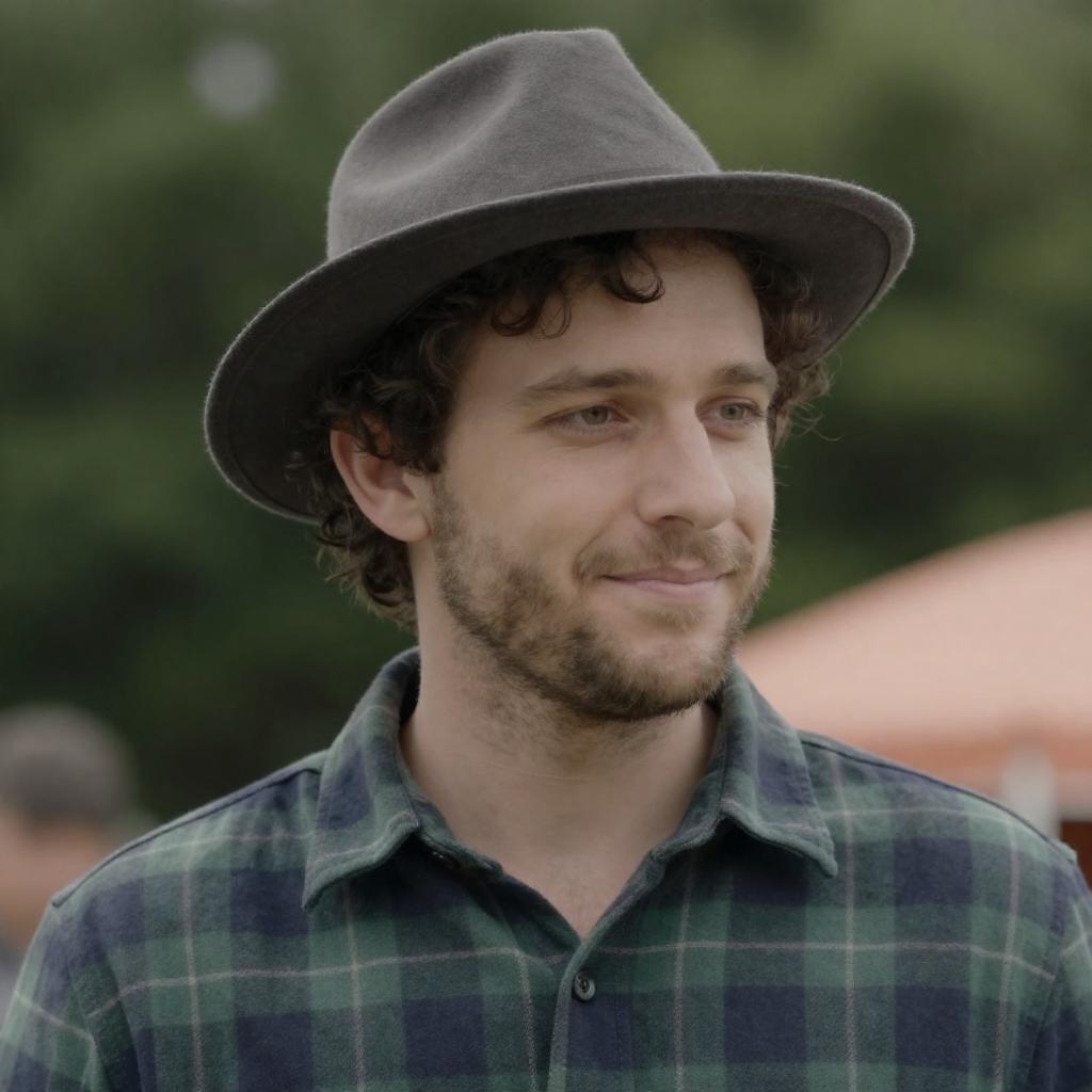 Curly Haired Man in Rural Setting
