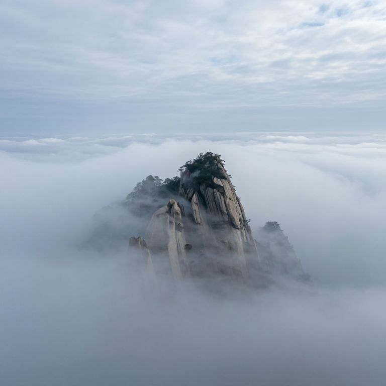 Inverted Mountain Peak Transcending Clouds